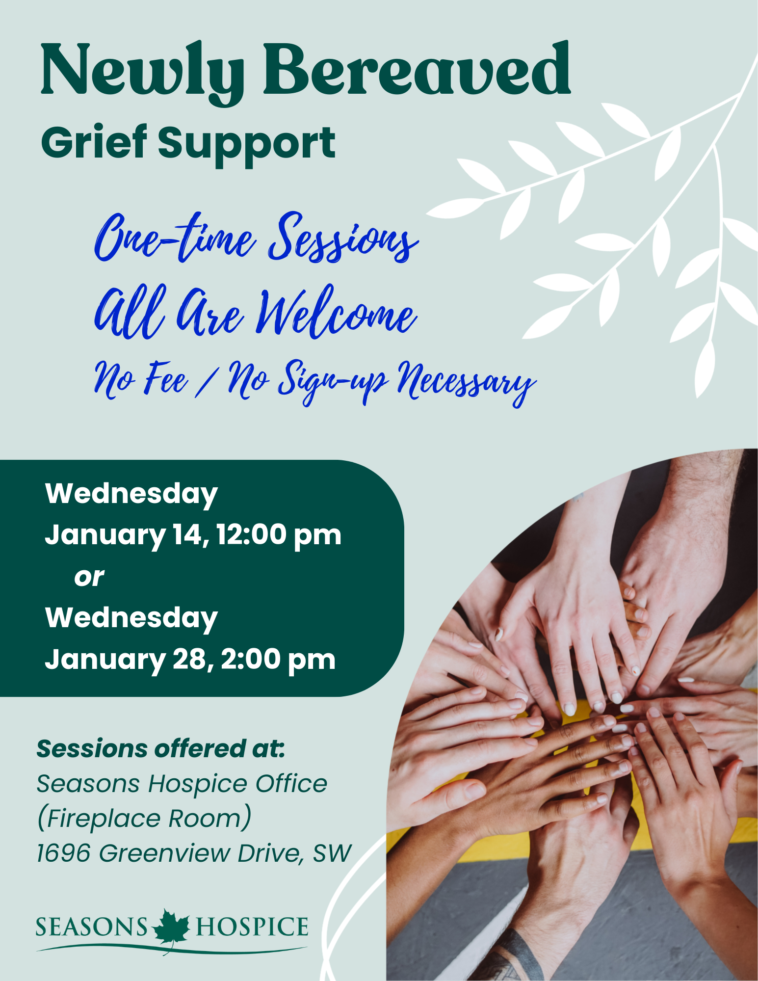 We are here for you and invite you to join one of our January newly bereaved grief support groups.